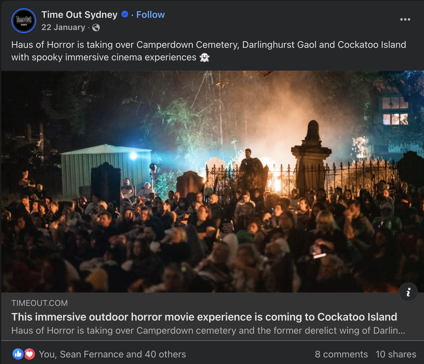 She is the Creative Director of Australia’s number one immersive horror brand- Haus of Horror. Haus of Horror draws thousands of locals and tourists every event to historic venues for all encompassing immersive experiences centred around horror film screenings in haunted locations.